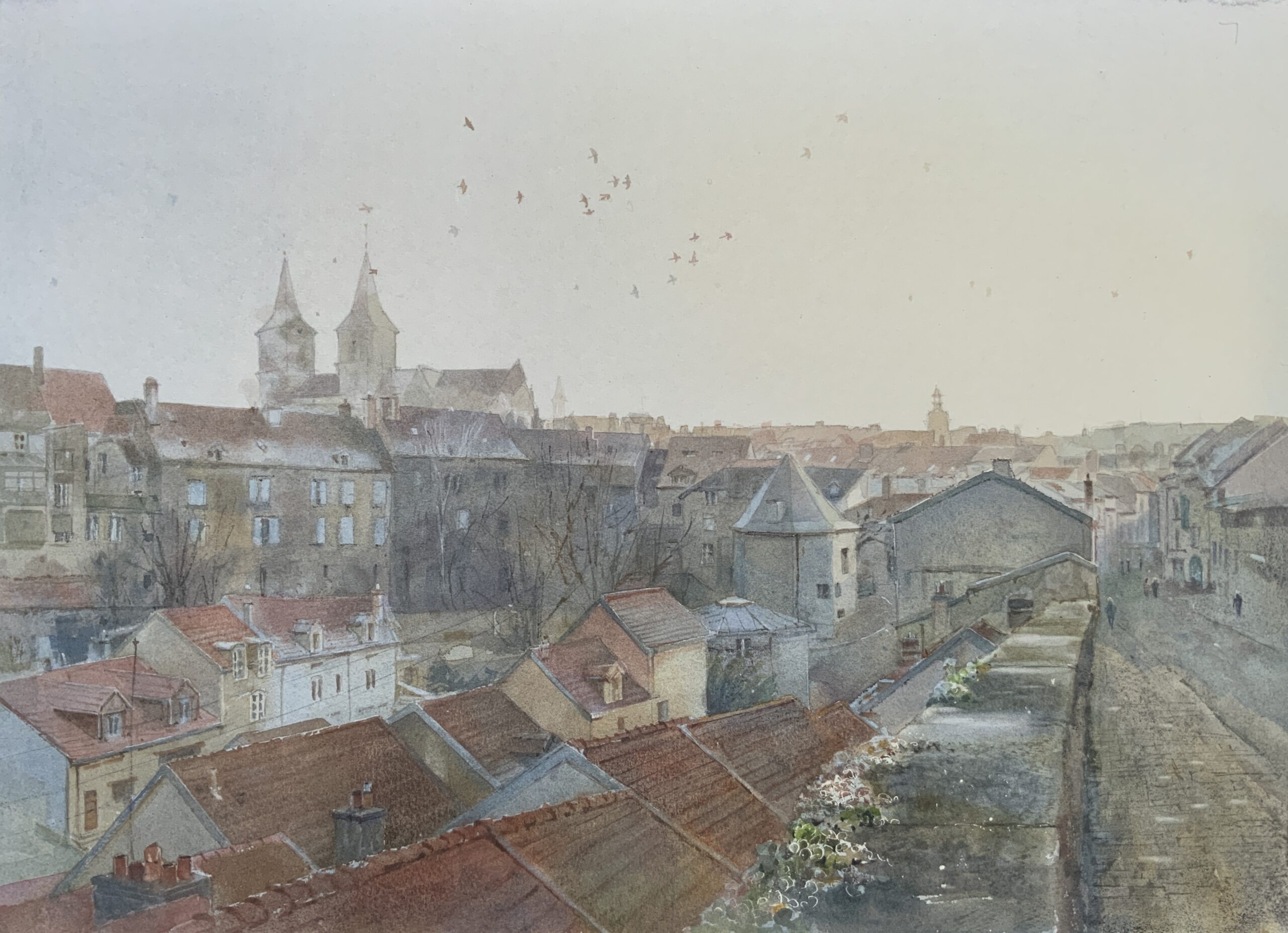 I like to watch how watercolour floats on the surface of paper, takes up space, merges with other colours or gives in to the pressure of the next stroke.
